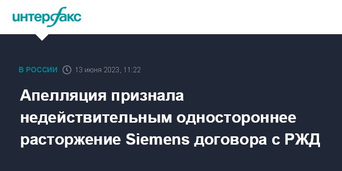 Апелляция признала недействительным одностороннее расторжение Siemens договора с РЖД