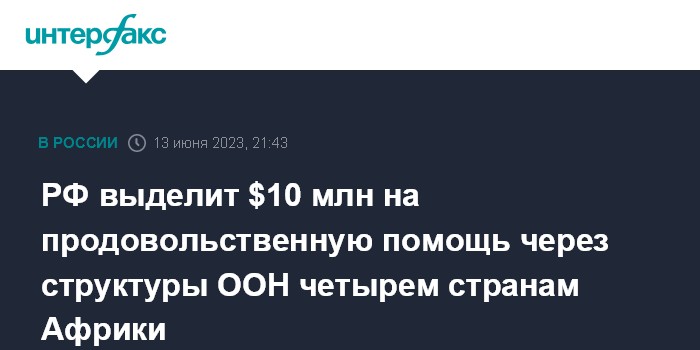 РФ выделит $10 млн на продовольственную помощь через структуры ООН четырем странам Африки