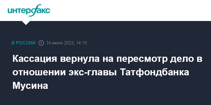 Кассация вернула на пересмотр дело в отношении экс-главы Татфондбанка Мусина