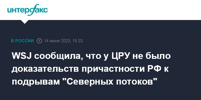 WSJ также утверждает, что летом 2022 года ЦРУ предупредило украинские власти о том, чтобы они не атаковали газопроводы. Предполагается, что это произошло после того, как в распоряжении разведки США оказалась информация о сценарии, разработанном Украиной, с целью "разрушить энергосообщение между Россией и Европой".