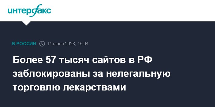 Более 57 тысяч сайтов в РФ заблокированы за нелегальную торговлю лекарствами