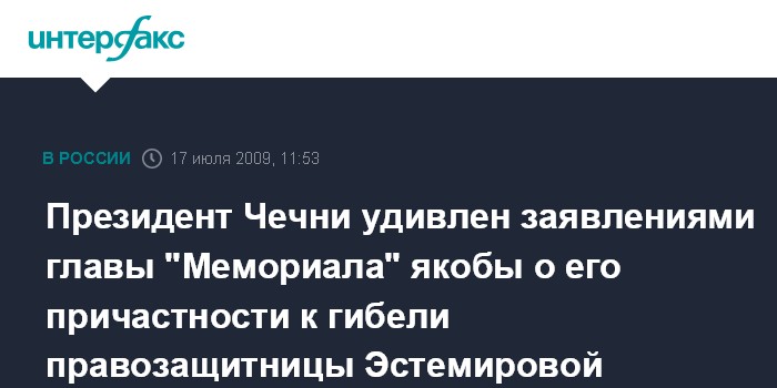Президент Чечни удивлен заявлениями главы "Мемориала" якобы о его причастности к гибели правозащитницы Эстемировой