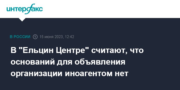 Москва. 15 июня. INTERFAX.RU - В "Ельцин Центре" спокойно отнеслись к информации о проверке организации на предмет наличия иноагентской деятельности, сообщила "Интерфаксу" официальный представитель центра Евгения Капитонихина.