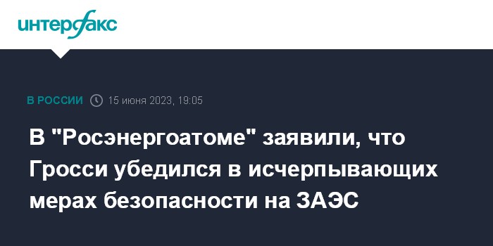 Москва. 15 июня. INTERFAX.RU - Советник главы концерна "Росэнергоатом" Ренат Карчаа уверен, что в ходе визита делегации Международного агентства по атомной энергии (МАГАТЭ) на Запорожскую АЭС удалось убедить его директора Рафаэля Гросси в исчерпывающих мерах для обеспечения ядерной безопасности.