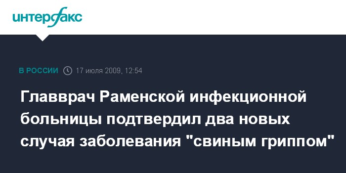 Главврач Раменской инфекционной больницы подтвердил два новых случая заболевания "свиным гриппом"