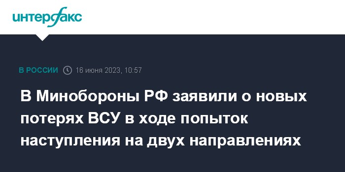 В Минобороны РФ заявили о новых потерях ВСУ в ходе попыток наступления на двух направлениях