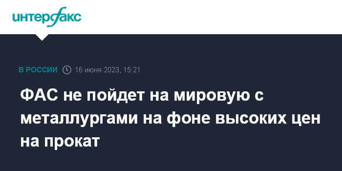 ФАС не пойдет на мировую с металлургами на фоне высоких цен на прокат