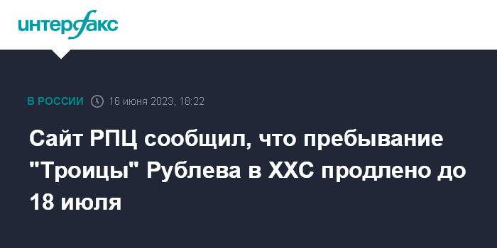 Сайт РПЦ сообщил, что пребывание "Троицы" Рублева в ХХС продлено до 18 июля