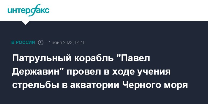 Москва. 17 июня. INTERFAX.RU - Экипаж патрульного корабля "Павел Державин" провел в ходе учения артиллерийские стрельбы по морской и воздушной цели в акватории Черного моря, сообщила пресс-служба ЧФ.