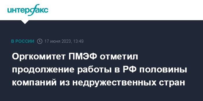 Оргкомитет ПМЭФ отметил продолжение работы в РФ половины компаний из недружественных стран