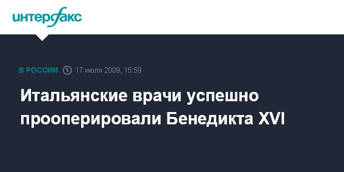 Рим. 17 июля. INTERFAX.RU - Врачи из больницы итальянского города Аоста успешно провели хирургическую операцию папе римскому Бенедикту XVI, сломавшему запястье.