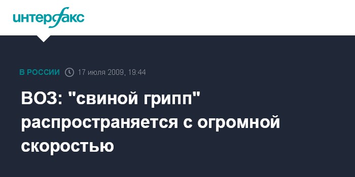 Женева. 17 июля. INTERFAX.RU - Вирус гриппа A/H1N1 распространяется с беспрецедентной скоростью, заявили в пятницу представители ВОЗ.