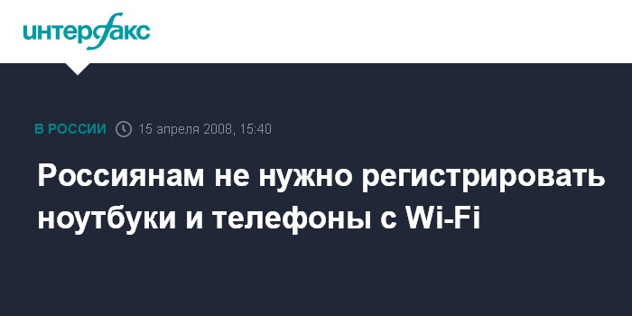 Москва. 15 апреля. INTERFAX.RU - В Россвязьохранкультуре опровергают информацию о том, что сейчас требуется регистрация ноутбуков с системой Wi-Fi.