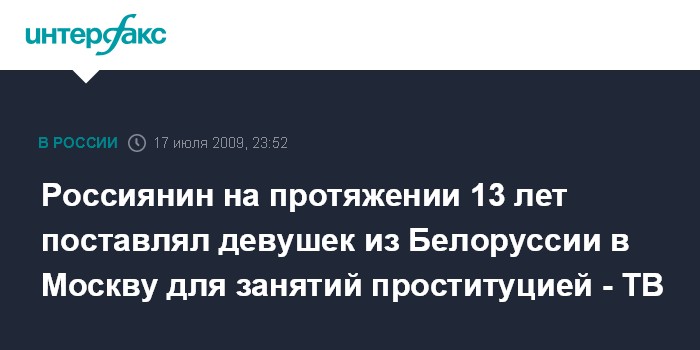 Россиянин на протяжении 13 лет поставлял девушек из Белоруссии в Москву для занятий проституцией - ТВ