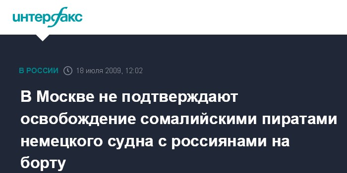 В Москве не подтверждают освобождение сомалийскими пиратами немецкого судна с россиянами на борту