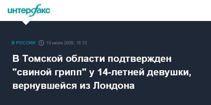 Москва. 18 июля. INTERFAX.RU - В городе Северск Томской области у местной жительницы выявлено заражение свиным гриппом.