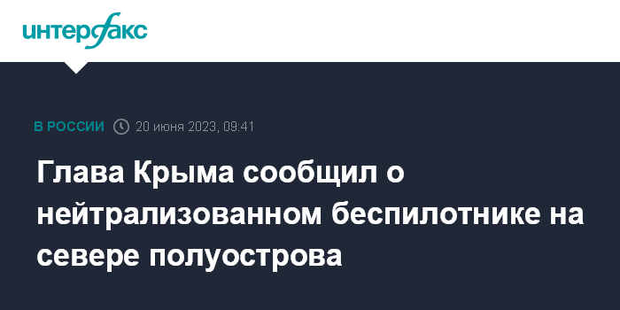 Москва. 20 июня. INTERFAX.RU - Российские военные нейтрализовали беспилотник на севере Крыма в ночь на вторник, сообщил глава республики Сергей Аксенов.