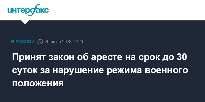 Принят закон об аресте на срок до 30 суток за нарушение режима военного положения