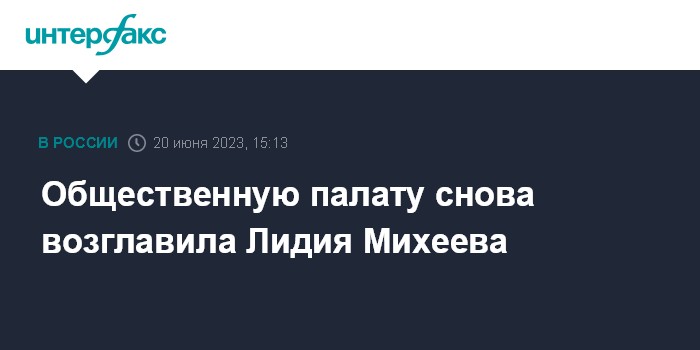 Москва. 20 июня. INTERFAX.RU - Лидия Михеева во вторник переизбрана на пост секретаря Общественной палаты восьмого созыва.