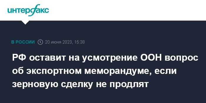 РФ оставит на усмотрение ООН вопрос об экспортном меморандуме, если зерновую сделку не продлят