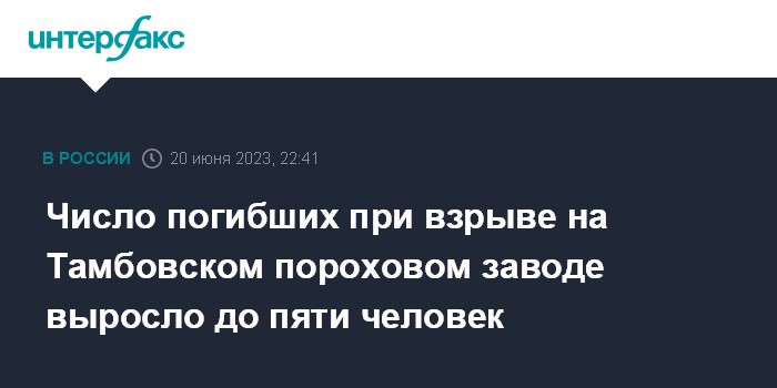 Число погибших при взрыве на Тамбовском пороховом заводе выросло до пяти человек