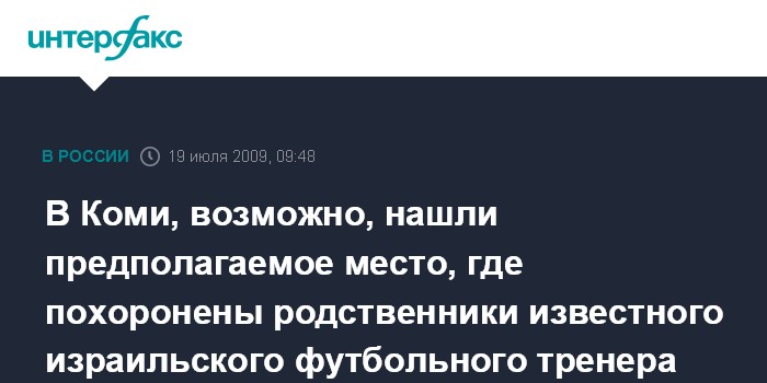 Сыктывкар. 19 июля. ИНТЕРФАКС СЕВЕРО-ЗАПАД - В республике Коми установлено предполагаемое место захоронения родственников известного футбольного тренера из Израиля Авраама Гранта.