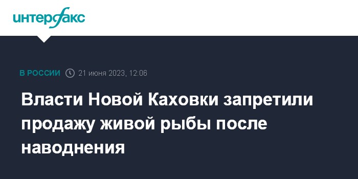 Москва. 21 июня. INTERFAX.RU - Глава администрации Новой Каховки Херсонской области, где устраняют последствия наводнения, Владимир Леонтьев подписал распоряжение о запрете продажи живой рыбы.