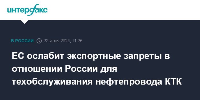 Москва. 23 июня. INTERFAX.RU - Европейский союз в рамках 11-го пакета санкций ослабит некоторые экспортные ограничения в отношении России для обеспечения возможности технического обслуживания системы "Каспийского трубопроводного консорциума", сообщается в пресс-релизе, опубликованном на сайте ЕК.