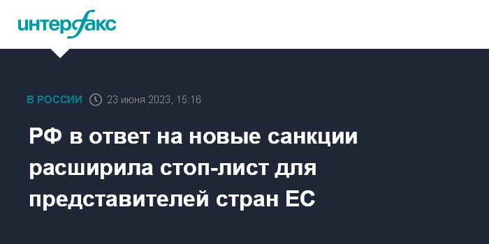 РФ в ответ на новые санкции расширила стоп-лист для представителей стран ЕС