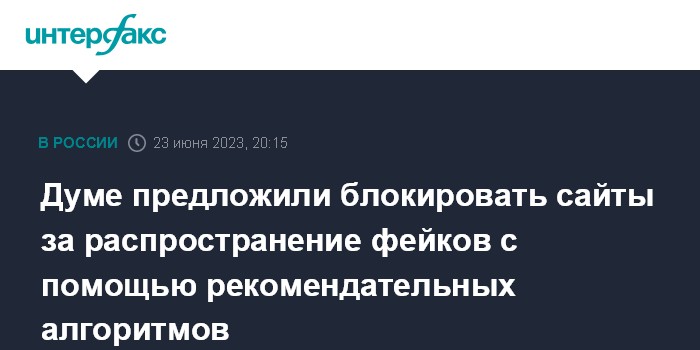 Москва. 23 июня. INTERFAX.RU - В Госдуму внесен законопроект об особенностях предоставления пользователям интернета информации с применением технологий, основанных на сборе, систематизации и анализе сведений, которые относятся к предпочтениям пользователей - рекомендательных технологий; инициатива, в частности, предусматривает возможность блокировки ресурсов за распространение фейков с помощью таких технологий.