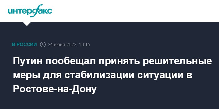 "Будут предприняты решительные действия по стабилизации ситуации в Ростове-на-Дону. Она остаётся сложной", - сказал Путин в обращении к россиянам.
