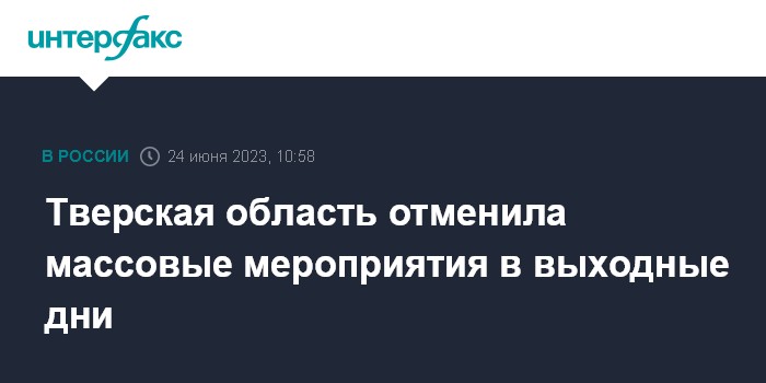 Москва. 24 июня. INTERFAX.RU - Власти Тверской области сообщили об отмене массовых мероприятий в эти выходные дни.