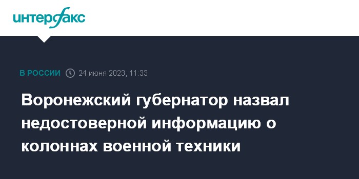 Москва. 24 июня. INTERFAX.RU - Губернатор Воронежской области Александр Гусев назвал недостоверной информацию о продвижении колонн военной техники в регионе.