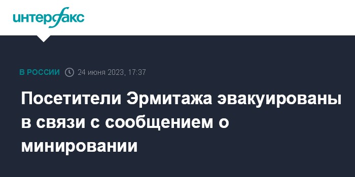"24 июня в Эрмитаж поступило сообщение о минировании здания. Посетители были эвакуированы с территории Главного музейного комплекса", - сказал собеседник агентства.