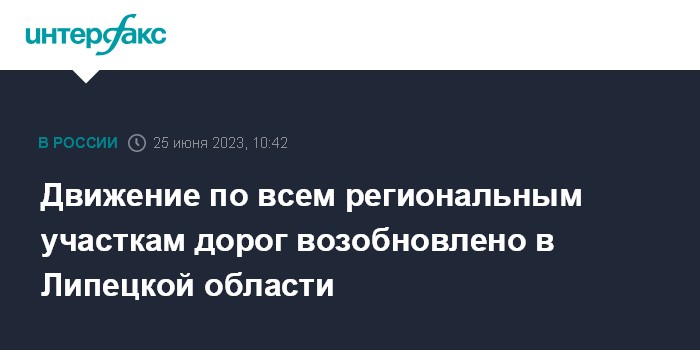 Москва. 25 июня. INTERFAX.RU - Автомобильные дороги Липецкой области открыты для движения, сообщает пресс-служба правительства региона в воскресенье.