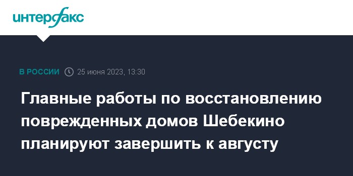 Москва. 25 июня. INTERFAX.RU - Губернатор Белгородской области Вячеслав Гладков сообщил о ходе восстановительных работ жилищного фонда, поврежденного в ходе обстрелов с украинской стороны в городе Шебекино.
