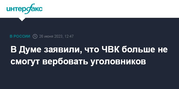 В Думе заявили, что ЧВК больше не смогут вербовать уголовников