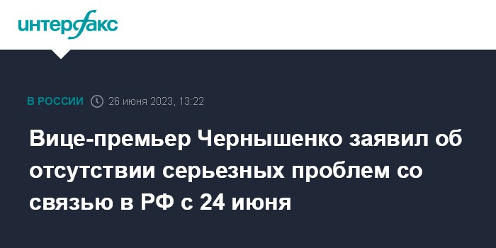 Вице-премьер Чернышенко заявил об отсутствии серьезных проблем со связью в РФ с 24 июня
