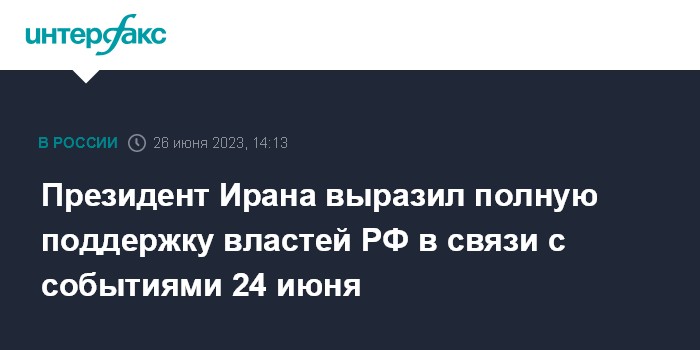 "Президент Ирана выразил полную поддержку российского руководства в связи с событиями 24 июня", - говорится в сообщении.