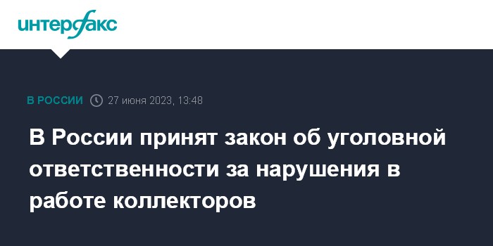 В России принят закон об уголовной ответственности за нарушения в работе коллекторов