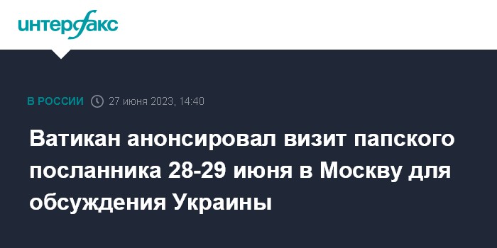 Ватикан анонсировал визит папского посланника 28-29 июня в Москву для обсуждения Украины