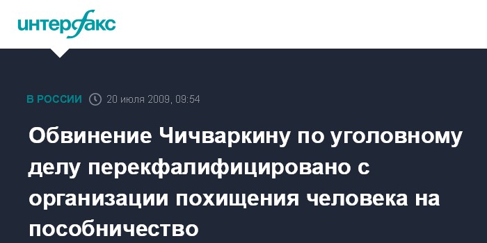 Обвинение Чичваркину по уголовному делу перекфалифицировано с организации похищения человека на пособничество