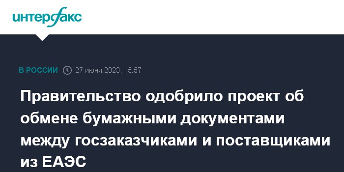 Правительство одобрило проект об обмене бумажными документами между госзаказчиками и поставщиками из ЕАЭС