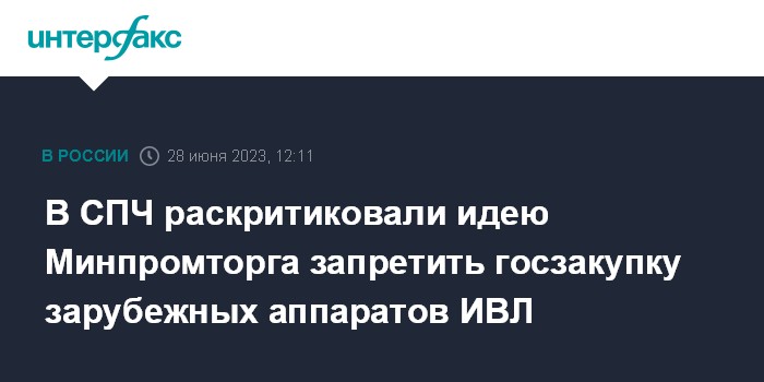 Ранее издания "Коммерсантъ" и "Ведомости" обратили внимание на проект Минпромторга, в котором предлагается ввести запрет на государственные закупки аппаратов искусственной вентиляции легких (ИВЛ) зарубежного производства. Проект постановления правительства опубликован на портале нормативных правовых актов.