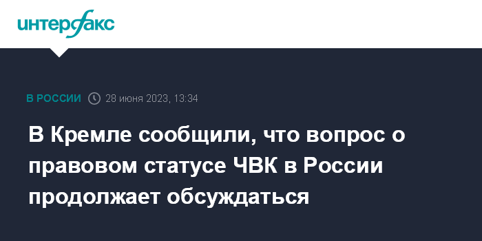 В Кремле сообщили, что вопрос о правовом статусе ЧВК в России продолжает обсуждаться