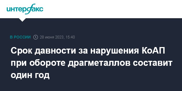 Срок давности за нарушения КоАП при обороте драгметаллов составит один год