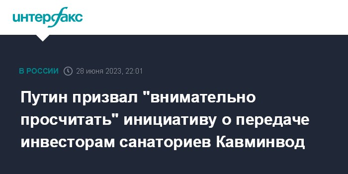 "Согласен с прозвучавшими предложениями по развитию санаторно-курортных объектов в Северокавказском федеральном округе, в том числе в регионе Кавказских Минеральных Вод (...). Но хочу подойти к этому очень аккуратно. Здесь министр (экономического развития Максим Решетников - ИФ) предлагал тут же все раздать. Да, конечно, там, где это обосновано, безусловно, на это надо идти. Но действовать нужно аккуратно", - сказал Путин, завершая совещание по развитию туристической отрасли, которое он провел в Дербенте.