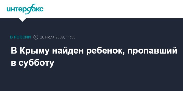 Москва. 20 июля. INTERFAX.RU - Утром в понедельник найден 6-летний Александр Усеинов, пропавший 18 июля в Симферопольском районе Крыма. Состояние здоровья ребенка удовлетворительное.