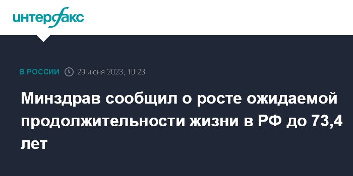 В апреле 2023 года вице-премьер Татьяна Голикова сообщала, что показатель продолжительности жизни в России за первый квартал 2023 года составил 73,3 года.