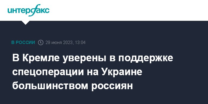 Москва. 29 июня. INTERFAX.RU - Подавляющее большинство россиян поддерживают специальную военную операцию и стоящие перед ней цели, заявил пресс-секретарь президента РФ Дмитрий Песков.